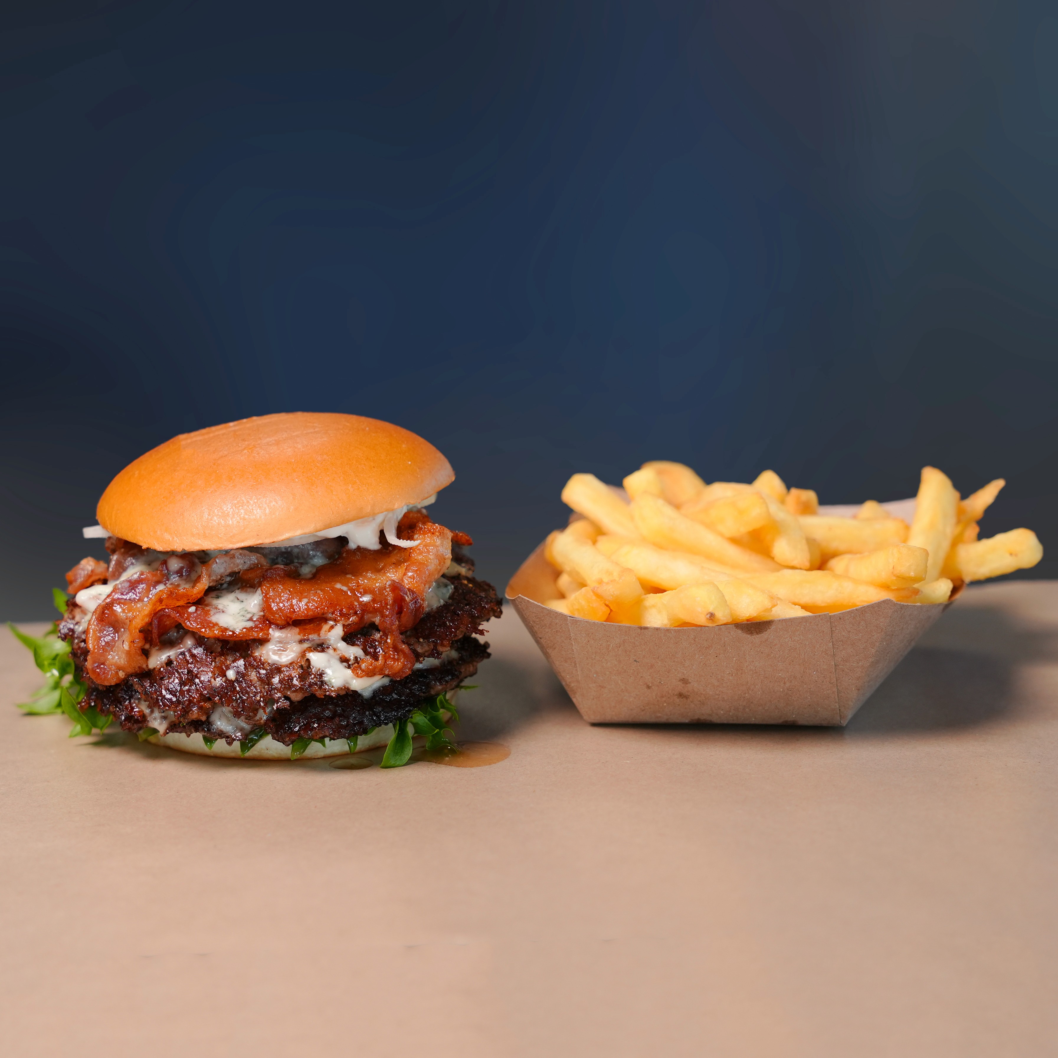 Våra burgare är skapade med passion och toppas med våra hemliga såser – för den ultimata smakupplevelsen. Alltid kött från lokala leverantörer. Pommes ingår på samtliga burgare.